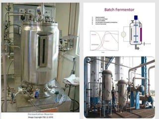 Glutamic acid is an important amino acid that can be produced through both chemical synthesis and microbial fermentation. The document discusses the industrial production of glutamic acid through fermentation using Corynebacterium glutamicum. It describes the fermentation process, including batch, fed-batch, and continuous fermentation. After fermentation, separation and purification processes are used to isolate glutamic acid, which is then converted to monosodium glutamate (MSG) for commercial use as a flavor enhancer.