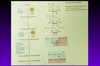 Glycolysis is a metabolic pathway that converts glucose into pyruvate, generating ATP and NADH. It is catalyzed by 10 cytosolic enzymes in 10 steps. There is a net gain of 2 ATP per glucose molecule. The NADH must be recycled to NAD+ either through aerobic respiration or by converting pyruvate to lactate anaerobically. Glycolysis is regulated at three irreversible steps catalyzed by hexokinase, phosphofructokinase-1, and pyruvate kinase. Other hexoses can also enter this ubiquitous pathway.