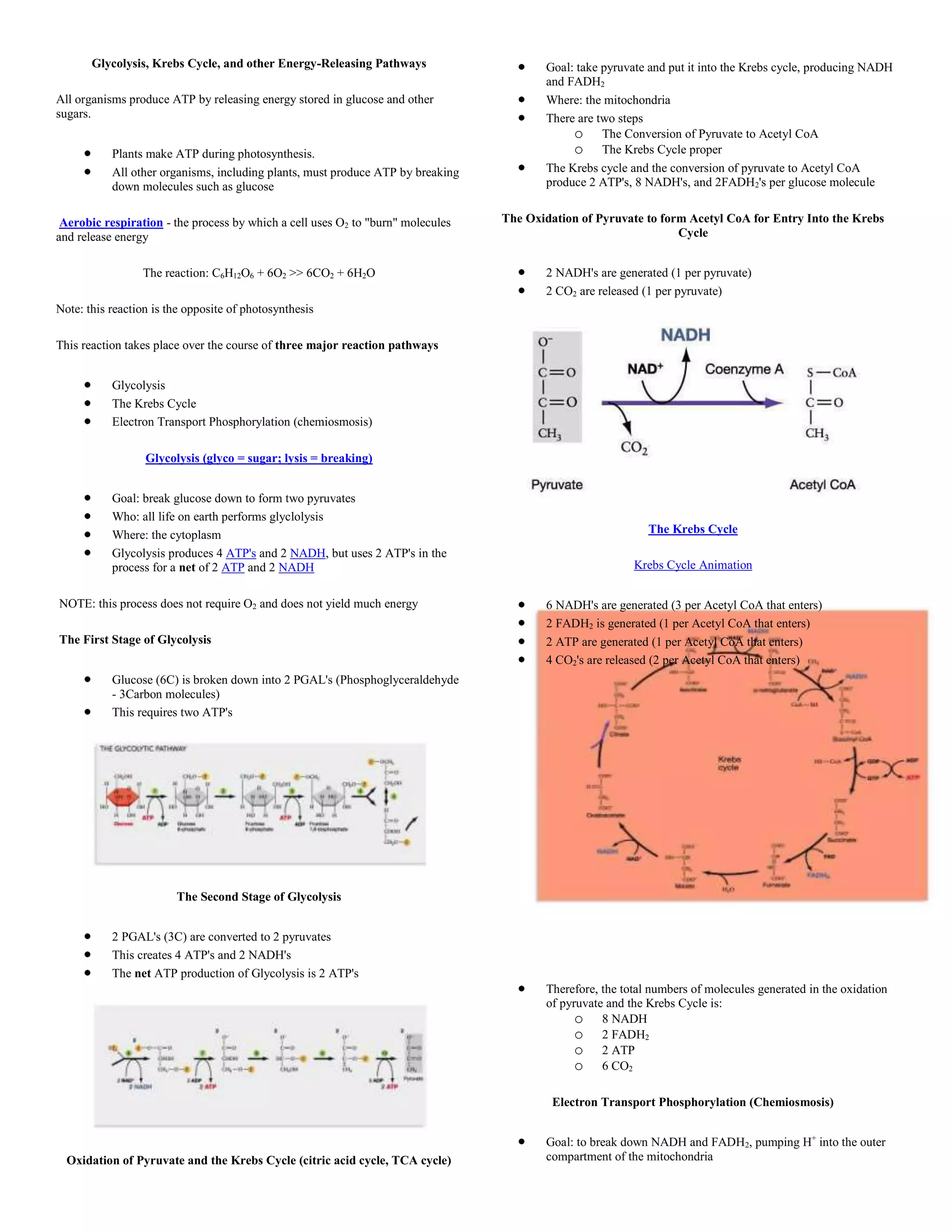 Glycolysis, the Krebs cycle, and oxidative phosphorylation work together to break down glucose and harvest energy in the form of ATP. Glycolysis produces 2 ATP and feeds pyruvate into the Krebs cycle in the mitochondria. The Krebs cycle further processes pyruvate and generates more ATP, as well as NADH and FADH2. These molecules are used in oxidative phosphorylation to pump protons across the mitochondrial membrane, driving ATP synthase to produce approximately 32 additional ATP. Aerobic respiration therefore yields about 36 ATP per glucose molecule.