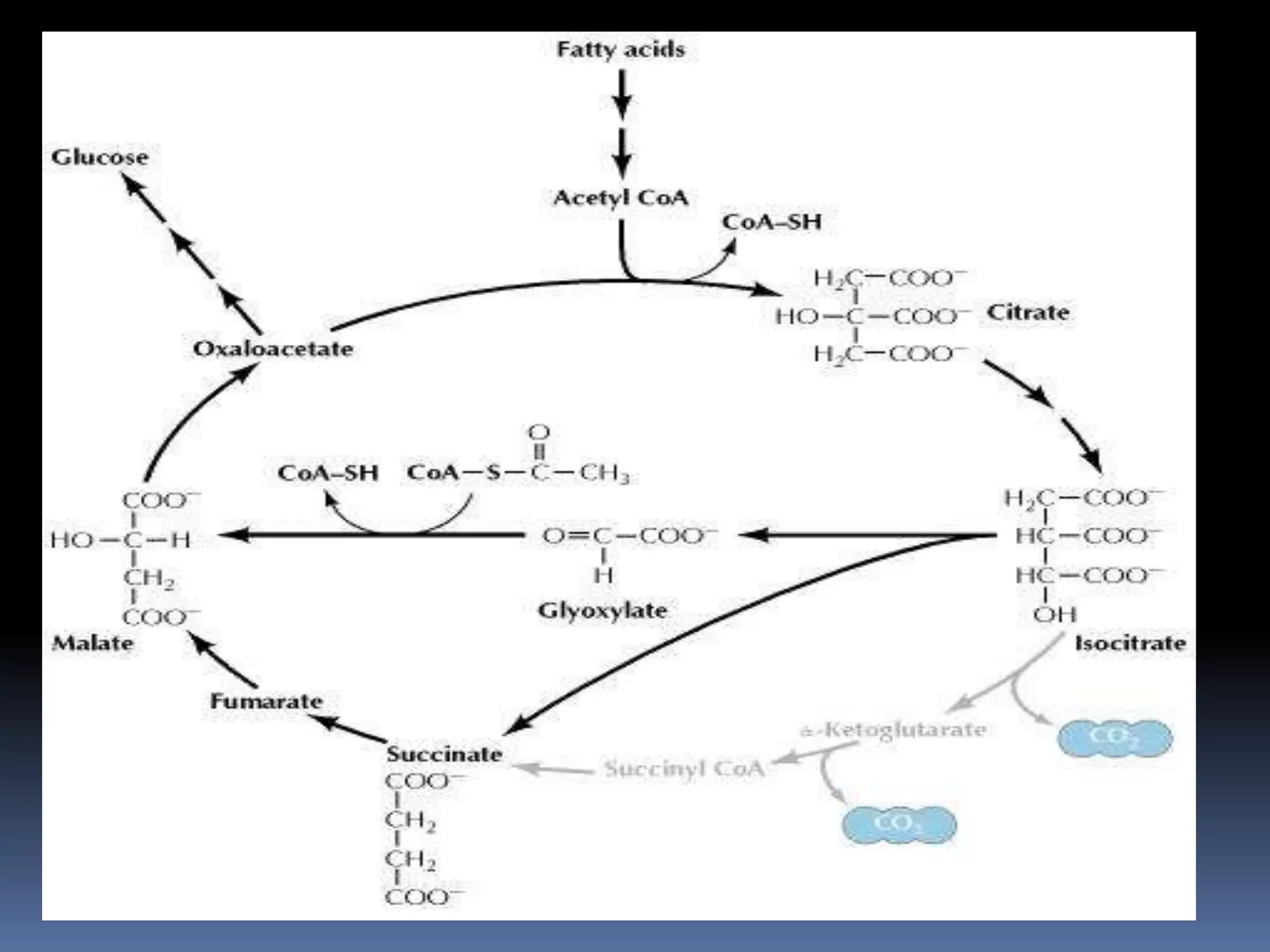 The glyoxylate cycle is an anabolic metabolic pathway that allows certain organisms, such as plants and fungi, to convert fats into carbohydrates by utilizing acetyl-CoA derived from the β-oxidation of fatty acids. This cycle occurs in glyoxysomes and involves enzymes that are isoenzymes of the TCA cycle, facilitating the production of succinate and ultimately glucose. It is regarded as a variant of the citric acid cycle, crucial for carbon assimilation and energy storage in these organisms.