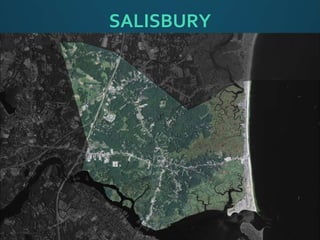 The document outlines adaptation planning strategies for coastal communities in Salisbury, Newburyport, and Newbury, focusing on vulnerable areas like Salisbury Beach and the Central Waterfront. It includes recommendations for short-term and long-term actions, such as land acquisition, dune restoration, and community engagement, to address challenges like erosion, flooding, and climate change. Key future strategies also involve education, engagement with local businesses, and adaptation of zoning regulations to improve resilience against coastal inundation projected for 2030 and 2070.