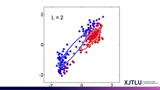 • Model Assumption: Data points are generated by a combination of several 2D Gaussian distributions.