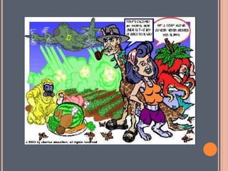 Genetically modified organisms (GMOs) are organisms whose genetic material has been altered using genetic engineering techniques. This document lists many potential advantages and disadvantages of GMOs. Some advantages mentioned include increased crop yields, reduced use of pesticides, development of drought-resistant crops, and potential health benefits. Some disadvantages include possible environmental and health risks, the rise of resistant pests and weeds, and ethical concerns regarding genetic modification of organisms. The document discusses the debate around GMOs and concludes that while risks exist, consumer fears may be exaggerated, and the choice regarding GMOs should be left to informed consumers.