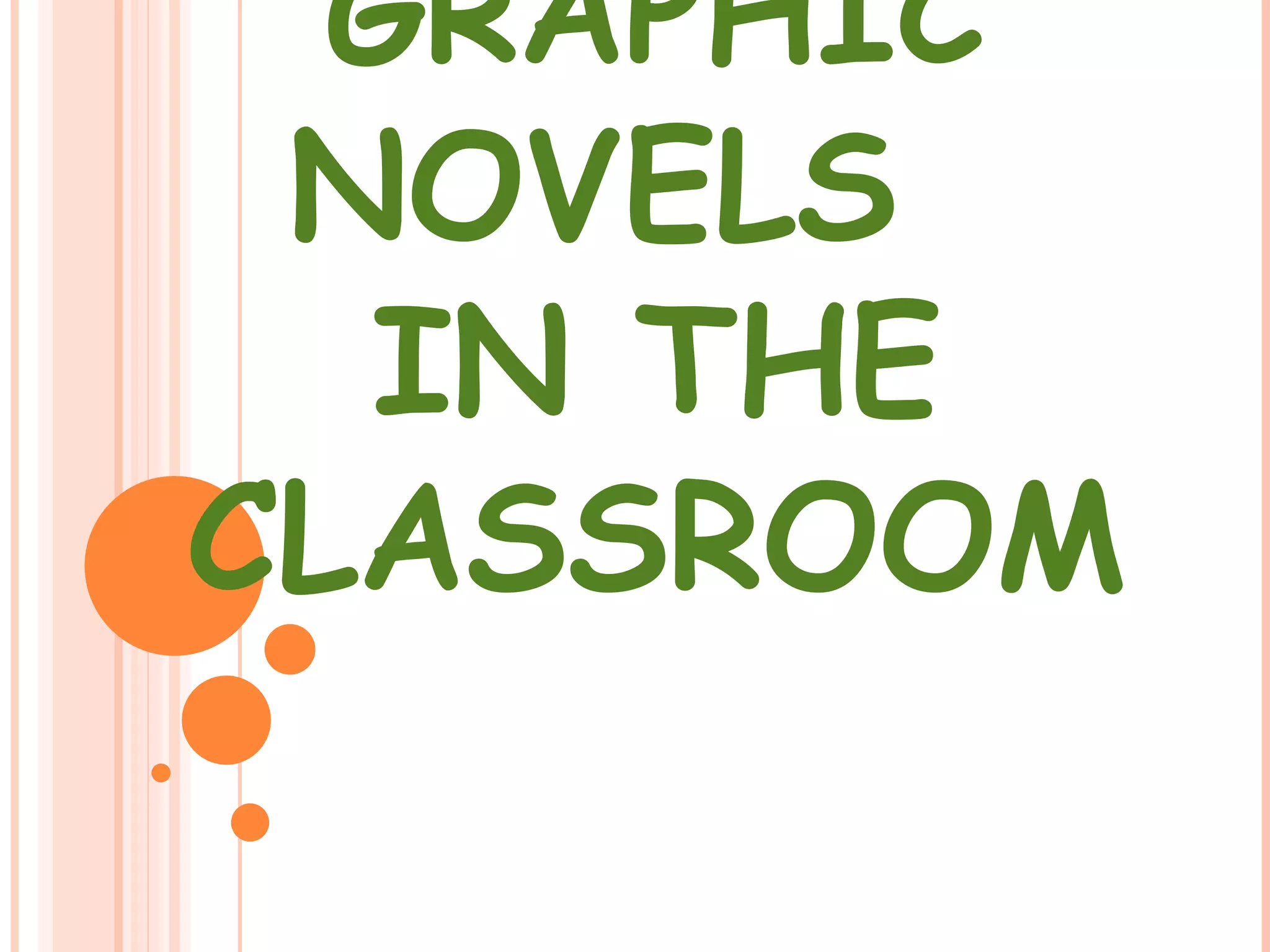 This document discusses using graphic novels in the classroom, including the differences between comics and graphic novels, parts of a graphic novel like panels and captions, how they can engage reluctant readers, and tips for selecting graphic novels for educational use such as ensuring the art supports the text. Educational publishers that offer nonfiction graphic novel series are highlighted.
