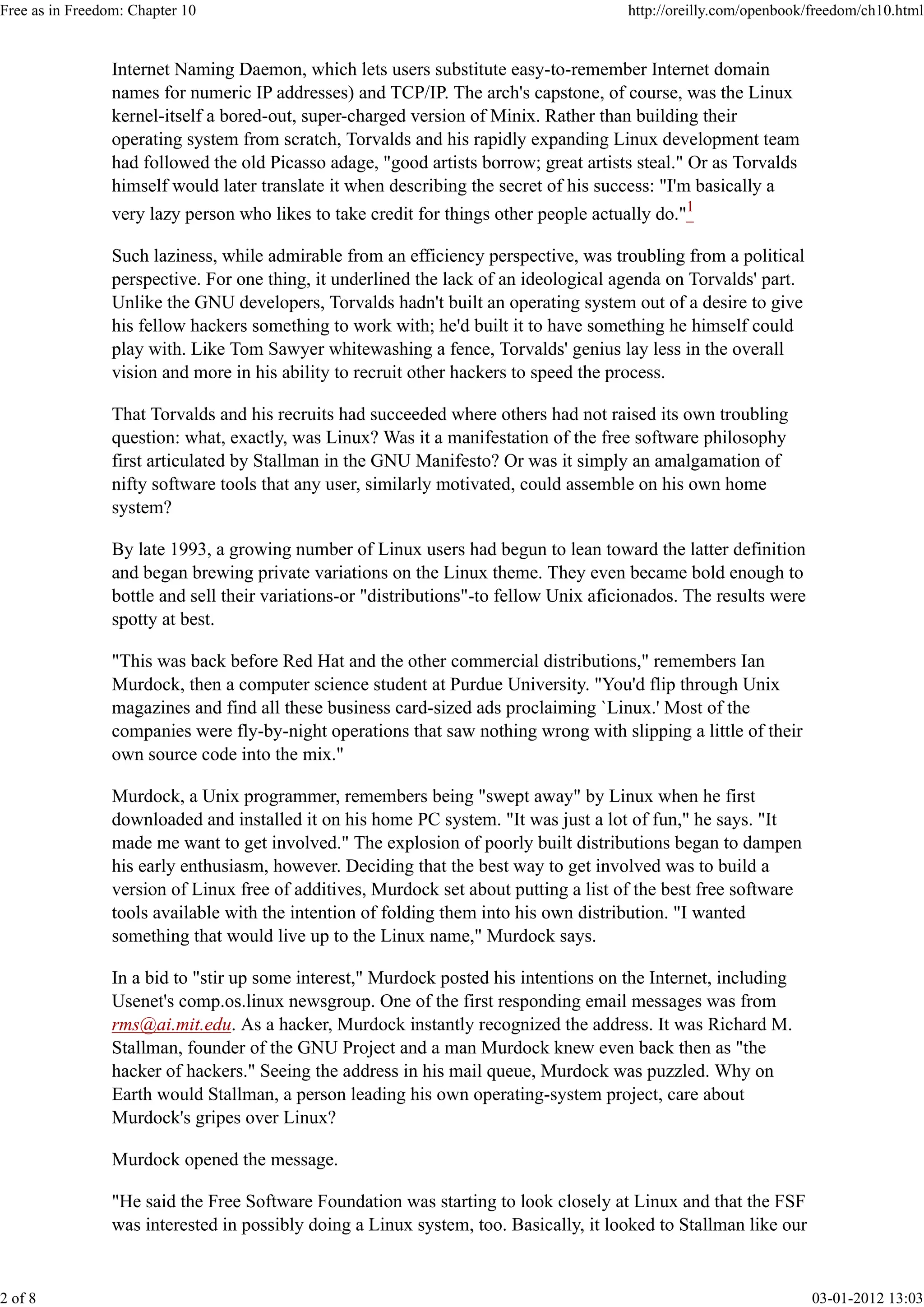 Richard Stallman and the Free Software Foundation were growing concerned about the growing split between GNU project developers and Linux kernel developers in the early 1990s. Stallman reached out to Ian Murdock, who was developing the Debian Linux distribution, to express interest in supporting Debian to help unify the communities. Murdock agreed to call the distribution GNU/Linux at Stallman's request to emphasize that Linux was built on the GNU userland and philosophy. This helped bring the communities closer together in their shared goal of developing free software.