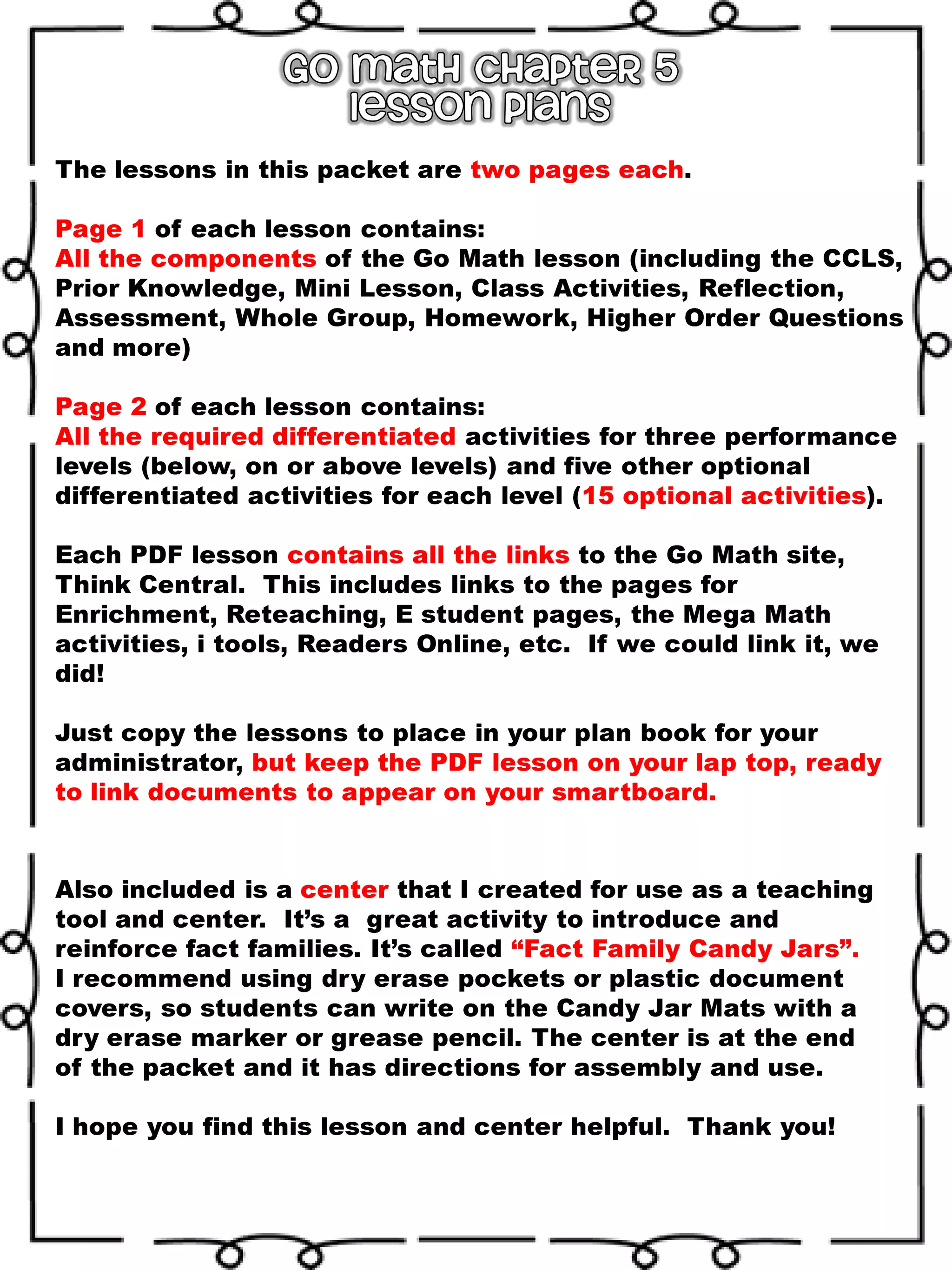 This document contains lesson plans for a 1st grade math chapter covering addition and subtraction within 20. The plans include objectives, vocabulary, activities and assessments for multiple lessons. Some key points: