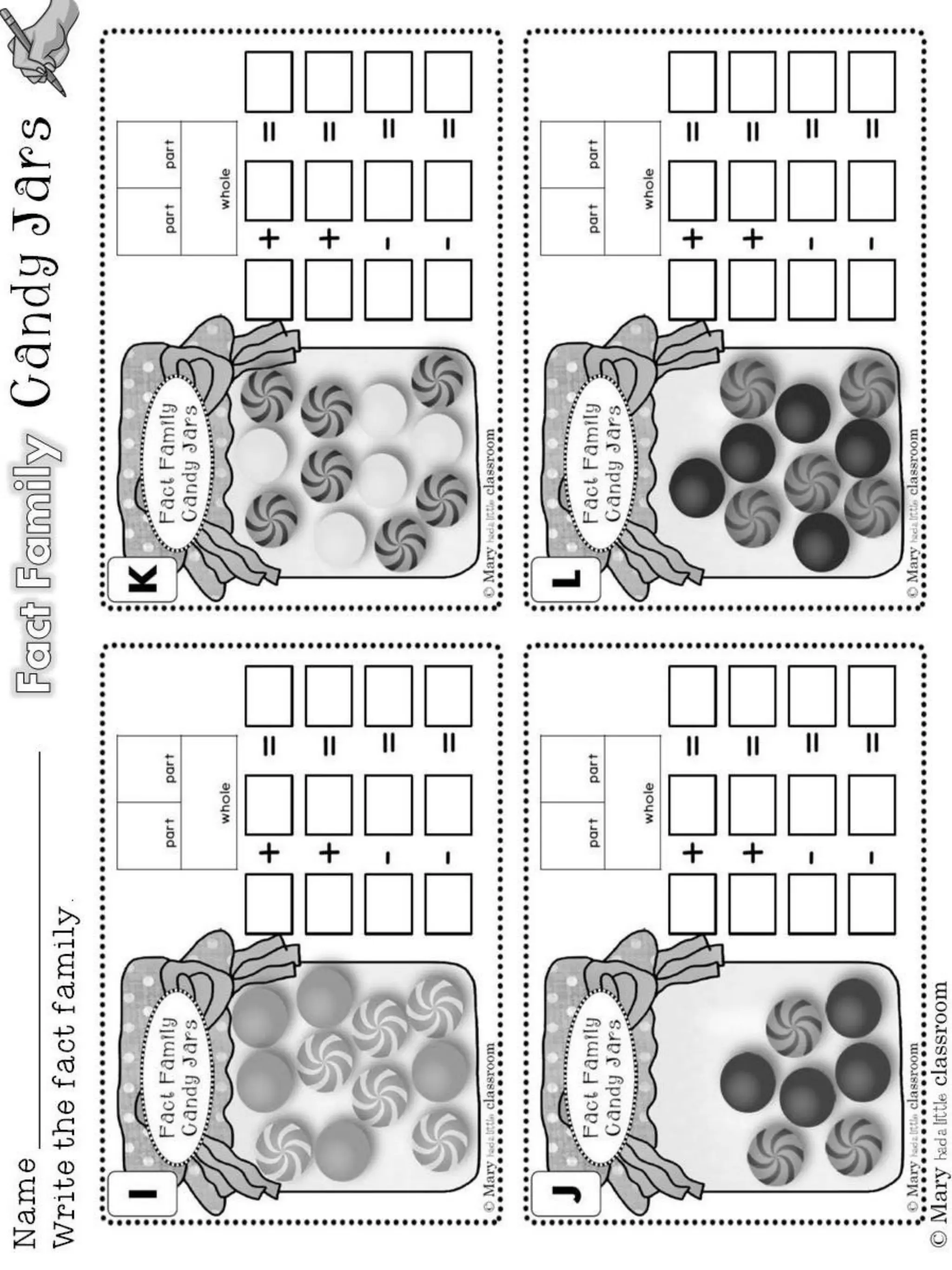 - Students practice related addition and subtraction facts, using connecting cubes to show relationships.