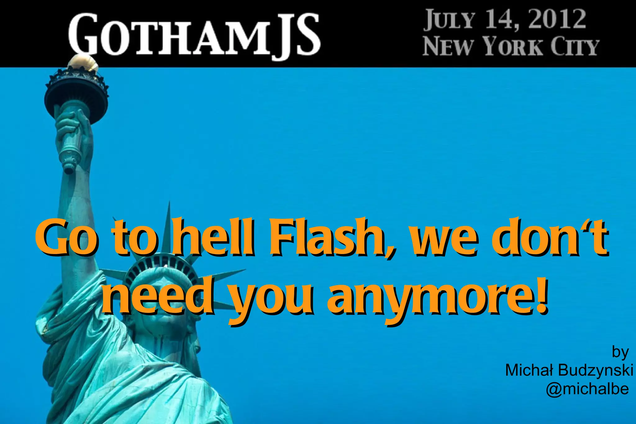 The document discusses the decline of Flash technology and the rise of HTML5 as a superior alternative for web development. It highlights various features and tools related to HTML5, compares them with Flash, and introduces open-source projects like Blysk for managing HTML5 modules. The author, Michał Budzyński, emphasizes the future of web development being mobile-focused and open-source, along with a conference announcement related to gaming and web technologies.