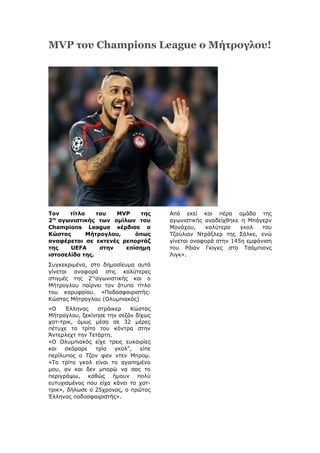 MVP του ChampionsLeague ο Μήτρογλου!