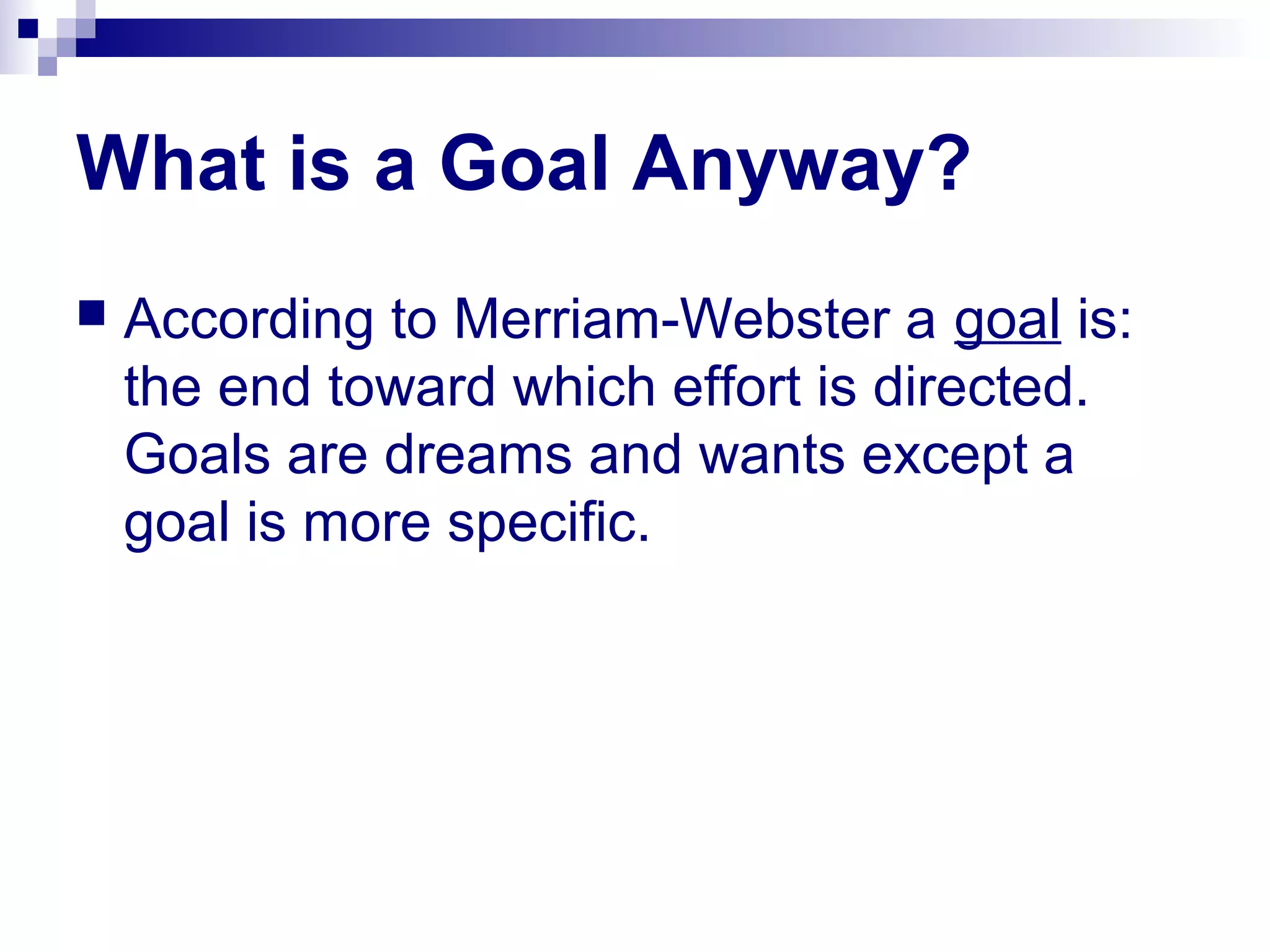 Goal setting provides direction and motivation to achieve dreams and wants. Effective goals are specific, measurable, action-oriented, realistic and tangible. They should also be reviewed regularly. When setting goals, it is important to identify strategies and plans to accomplish each goal. Writing goals down commits a person to achieving them. Maintaining motivation and commitment ensures progress towards goals. Flexibility is also important, as goals may need adjusting based on changing circumstances.