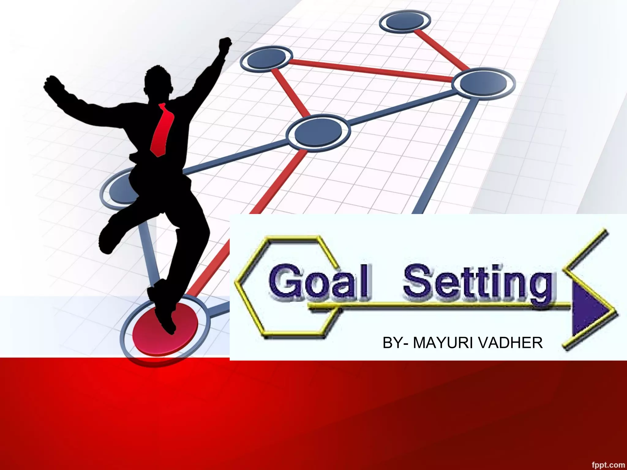 This document discusses how goal setting can help one achieve more and provides tips for effective goal setting. It notes that goal setting gives clarity, builds confidence, and helps one utilize their talents. However, some people do not set goals due to a pessimistic attitude, fear of failure, or low self-esteem. The document then outlines steps for setting goals, including identifying goals, prioritizing them, writing them down, planning to achieve them, and evaluating progress. It emphasizes the importance of setting goals that are specific, measurable, attainable, relevant, and time-bound.