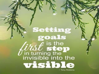 The document discusses the importance of goal setting, defining it as an action plan that motivates individuals and helps organize time and resources. It differentiates between short-term goals, which are meant to be achieved soon, and long-term goals, which take more time to accomplish, and introduces the concept of SMART goals. The text also emphasizes the need for a structured approach to goal setting, including identifying goals and obstacles, and it includes an inspirational story about a bodybuilder who achieved significant success.
