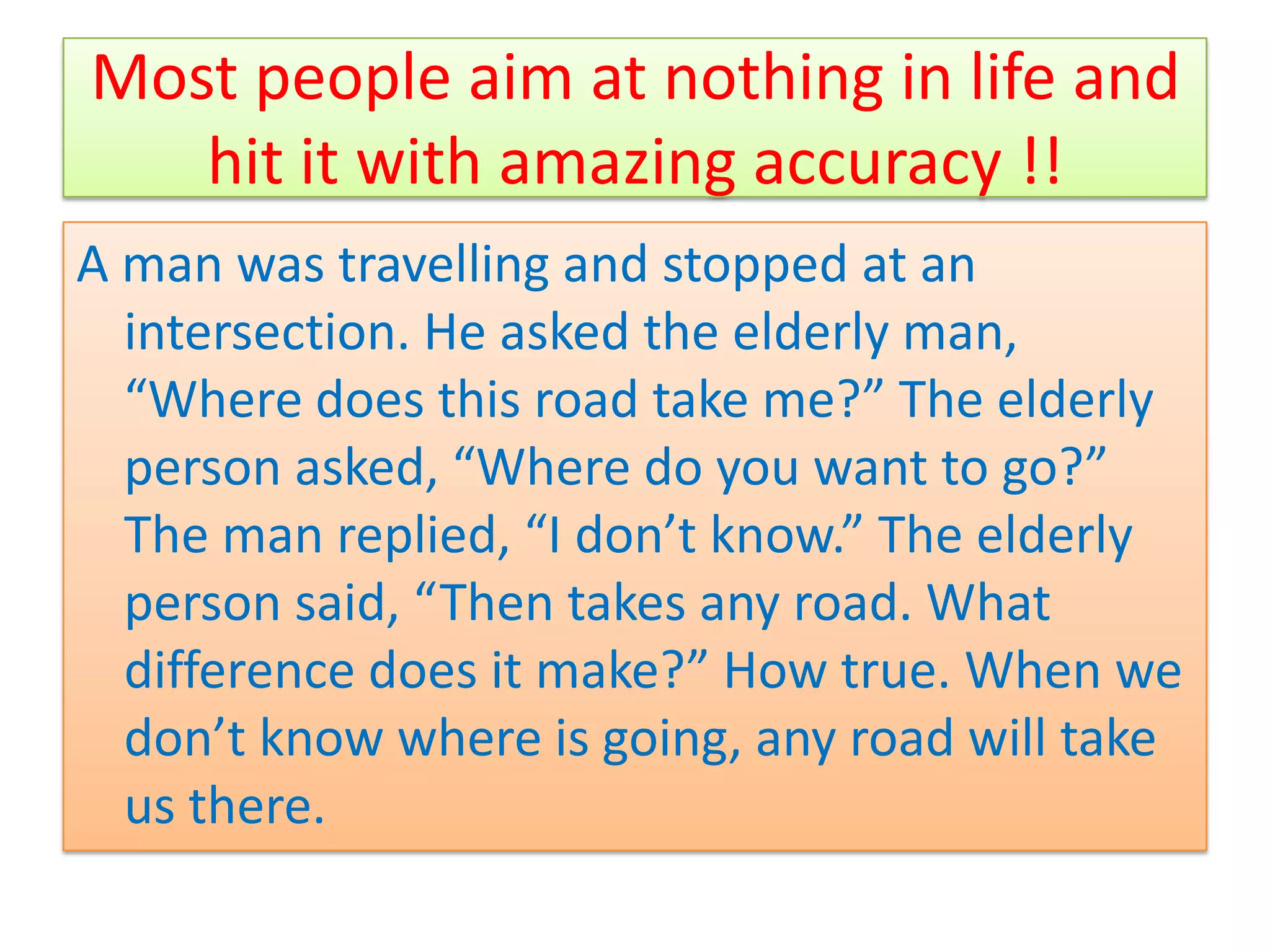This document discusses the importance of setting goals and provides guidance on effective goal setting. It begins by noting that many people do not set clear goals and therefore do not achieve their full potential. It then explores some common reasons why people fail to set goals, such as fear of failure or rejection. The document emphasizes that setting specific, measurable, achievable, realistic and time-bound (SMART) goals is crucial for success. It provides guidelines for writing goals and different types of goals one can set. Overall, the document makes the case that having clear goals provides focus and motivation to achieve what you want out of life.