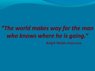This document provides information on setting goals through goal planning. It discusses the importance of setting goals and identifies reasons for doing so, such as taking control of your direction and avoiding having others set goals for you. It then outlines the basic steps to effective goal planning, including identifying current situations, priorities, and SMART (Specific, Measurable, Achievable, Realistic, Time-Based) goals. The document emphasizes writing goals down, making them personal, and developing a plan to overcome obstacles and track progress through actions and deadlines in order to achieve goals.