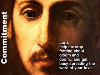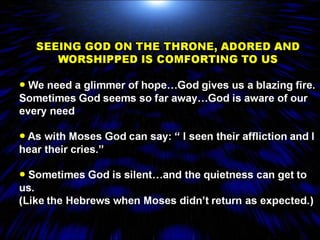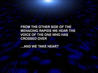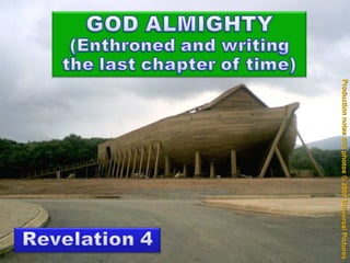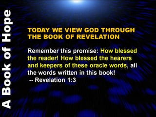The document is a collection of production notes, script excerpts, and inspirational passages about having faith in God even during difficult times. It references the book of Revelation in the Bible and promotes focusing on God's ultimate victory rather than one's own struggles. Various quotes encourage helping others learn about Jesus and finding assurance through trusting in God's love and control over all situations.