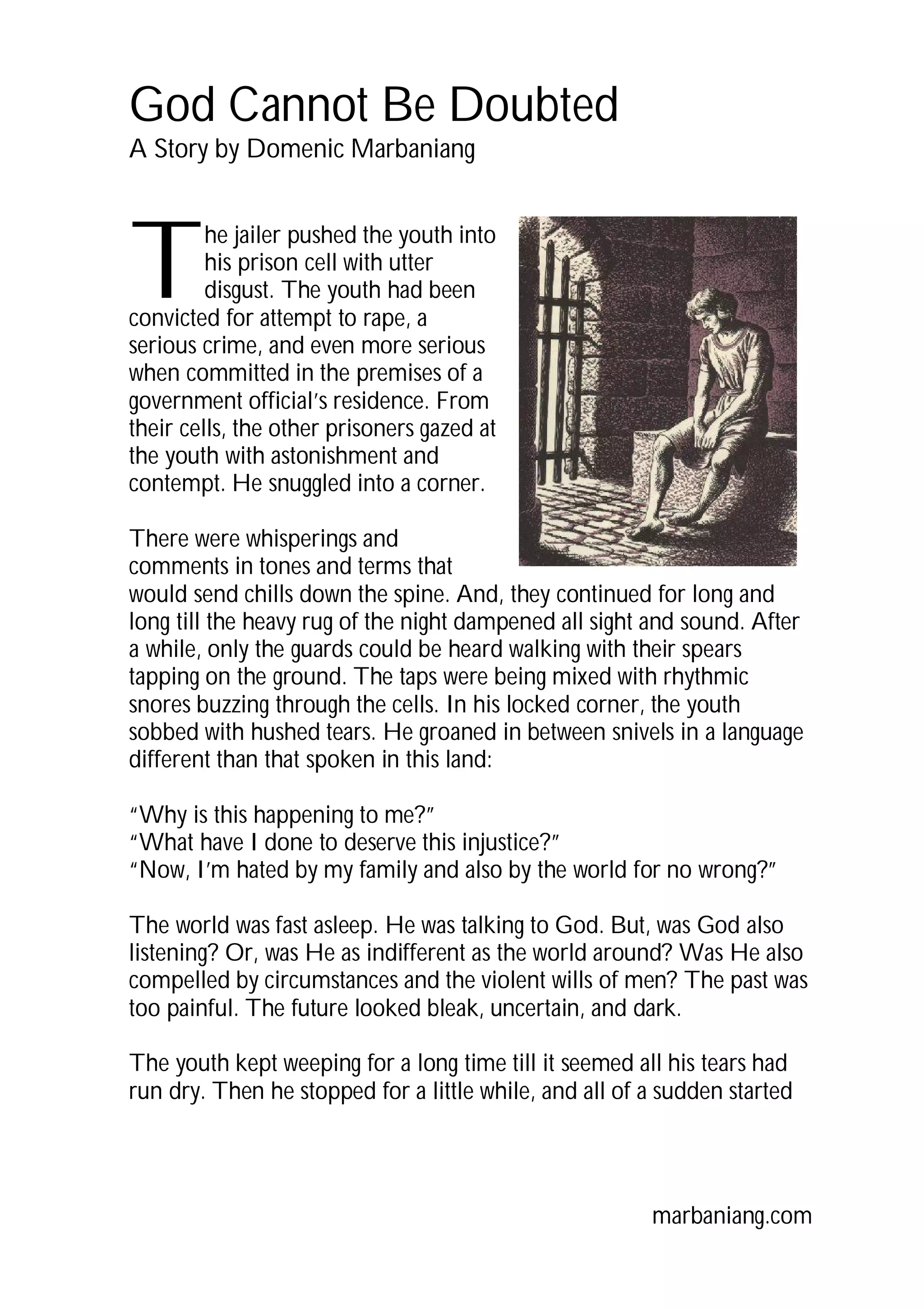 A young man is wrongly imprisoned for a crime he did not commit. In despair, he cries out to God questioning why this injustice has happened to him. Through singing a song to God, the man reaffirms his faith that God's power cannot be doubted, even in darkness. Unseen by the man, angels guarding his cell comment that he knows God cannot be doubted. Years later, the man rises to become the Prime Minister, known as Joseph, who was faithful to God even in his time of suffering.