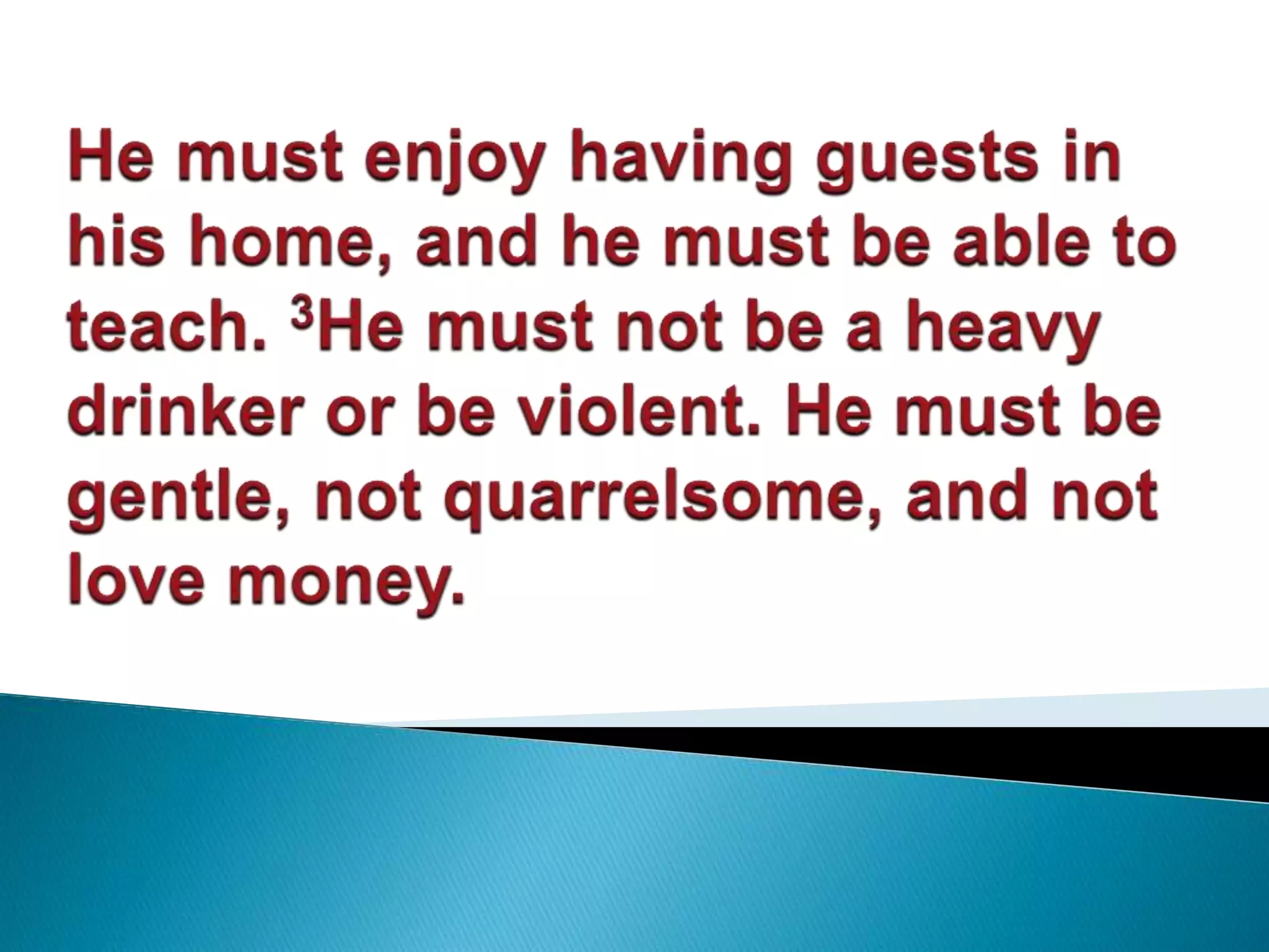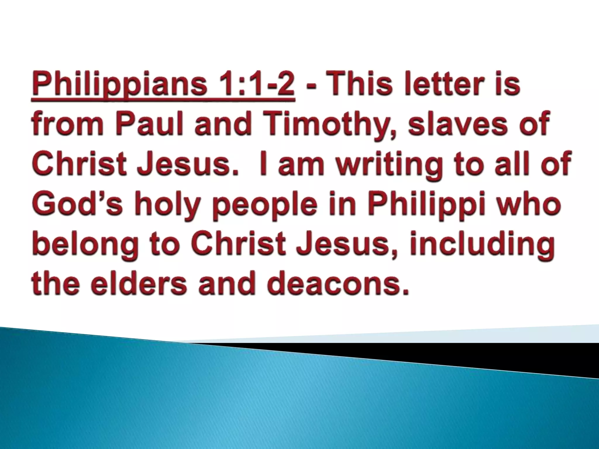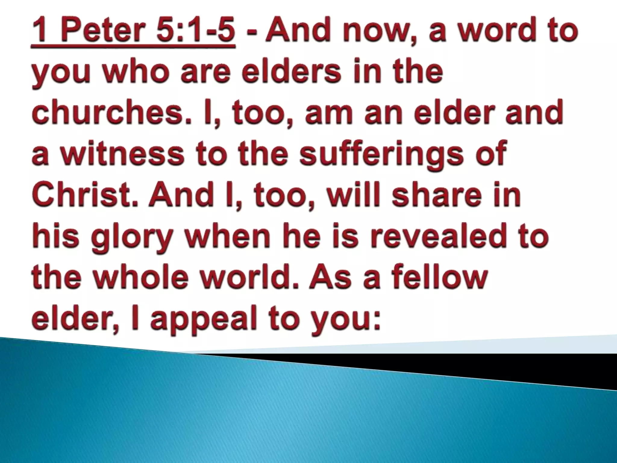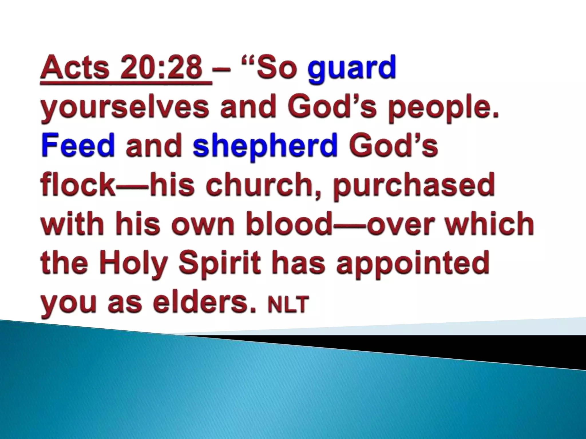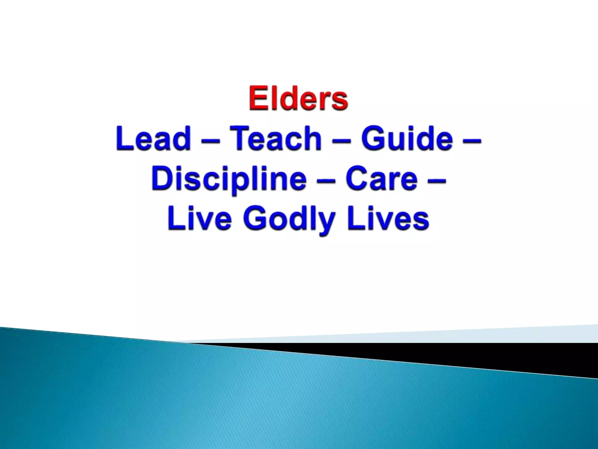 The document discusses the roles of elders and deacons in the church based on scripture. It defines elders and deacons, with deacons taking on practical administrative duties like caring for the poor, while elders have the ability to teach. It also defines key terms like grace, peace, and joy, explaining that true joy and peace come from God's grace, not worldly possessions or performance, and accepting this allows one to be content with their state in life.