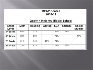 #6 This slide includes or Fall 2011 MEAP Scores that were previously reported to you. These scores were broken down and found specific skills and standards that need to be addressed on a more consistent basis.