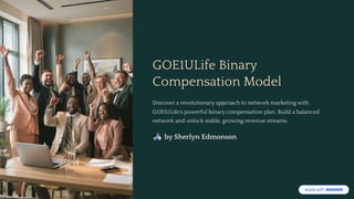 Whether you're a distributor or MLM professional, this SlideShare is your comprehensive guide to understanding, implementing, and optimizing the GOE1ULife Binary Compensation Model. With clear visuals, actionable insights, and strategic advice, you'll learn how to balance your legs, leverage spillover, and scale your team for sustainable, leveraged income.
