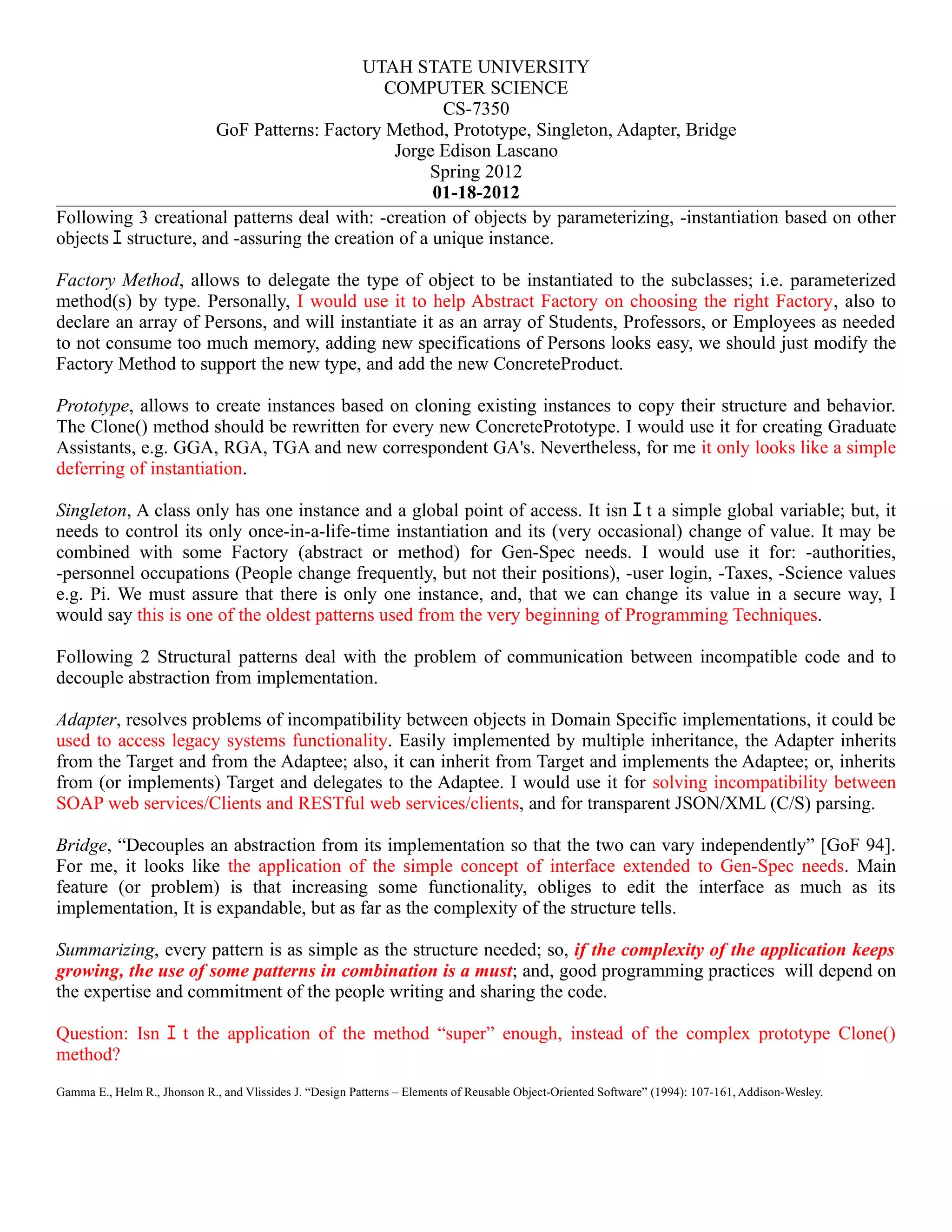 Hw8 GoF state, strategy, tempate method, visitor DOCX