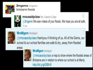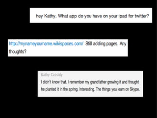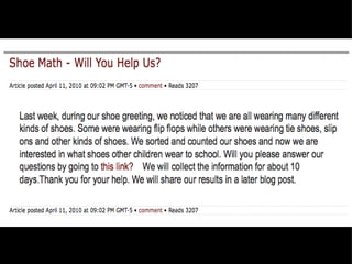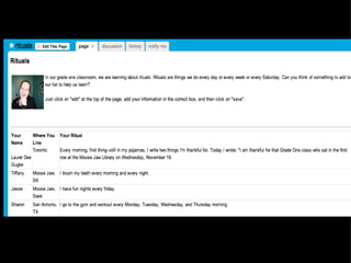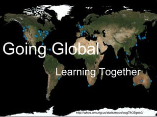 This document discusses tools and strategies for connecting classrooms globally to promote learning together from around the world. It mentions using tools like Skype, wikis, Google Docs, and blogging to connect classrooms and provide authentic audiences for student work. The goal is to foster a world view and transformative learning by making the most of technology to work differently and engage students through learning from others across borders without limitations of cut and paste approaches.