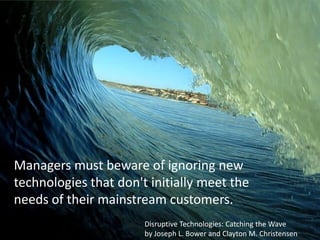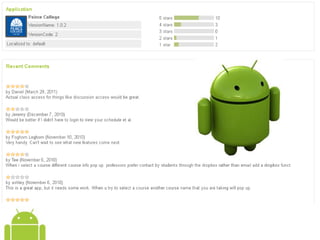 A disruptive innovation is a new technology that initially does not meet mainstream customer needs but later improves and disrupts an existing market. Mobile technologies like smartphones have grown rapidly in recent years. At Peirce College, mobile traffic to the website and student portal has increased dramatically from 2009 to 2011. The college is considering developing a mobile app or mobile-optimized website to provide services to prospective, current, and alumni students on their mobile devices. There are various tools and programming approaches for developing cross-platform mobile apps, but each platform also has its own challenges to consider.
