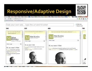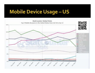 This document summarizes Nathan Gerber's presentation on mobile web strategies for higher education institutions. It discusses how mobile usage is growing rapidly, especially among students. It emphasizes that institutions need to shift from just making their sites work on mobile to designing for the unique needs of mobile users. The presentation provides recommendations on starting small with high priority content, using responsive design, leveraging content management systems, and testing on various devices. It also highlights tools like QR codes, analytics, and emulators to help institutions begin developing their mobile web presence.