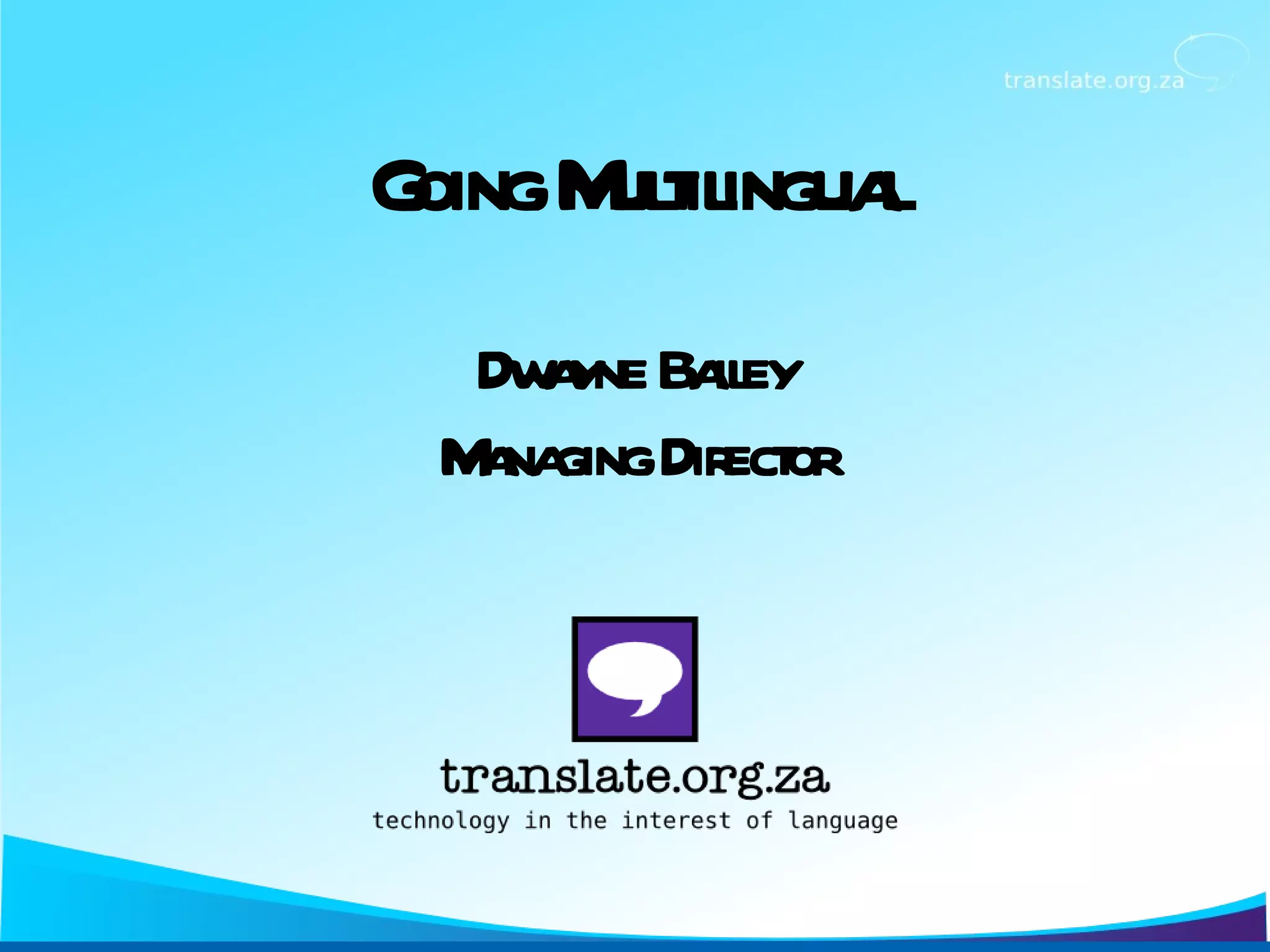 The document discusses language technologies and their potential to help people access information in their local languages. It outlines several technologies including machine translation, text-to-speech, automatic speech recognition, and optical character recognition that can help overcome barriers to information for those who do not speak dominant languages or who have disabilities. It provides examples of how these technologies have been applied through tools and software in African languages to translate content and share resources across languages spoken by hundreds of millions of people on the continent.