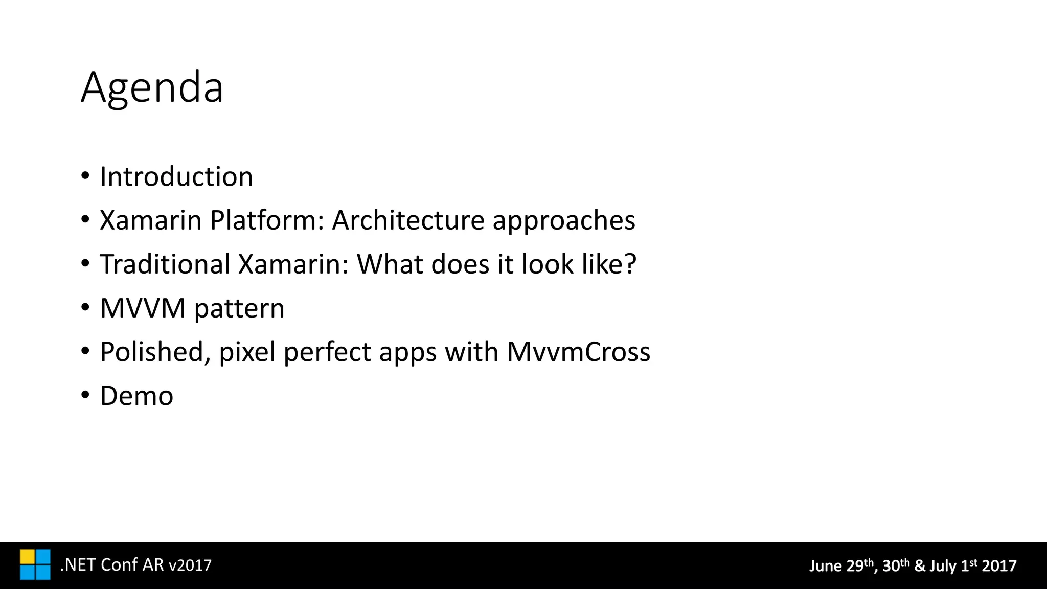 The document discusses the challenges in mobile app development, emphasizing the importance of choosing the right architecture, particularly between traditional Xamarin and Xamarin.Forms. It presents the MVVM architecture pattern, highlighting MVVMCross as a powerful framework for building pixel-perfect apps while addressing various mobile app challenges. The content is intended for developers attending the .NET Conf AR in 2017, featuring insights on best practices for using Xamarin platforms effectively.