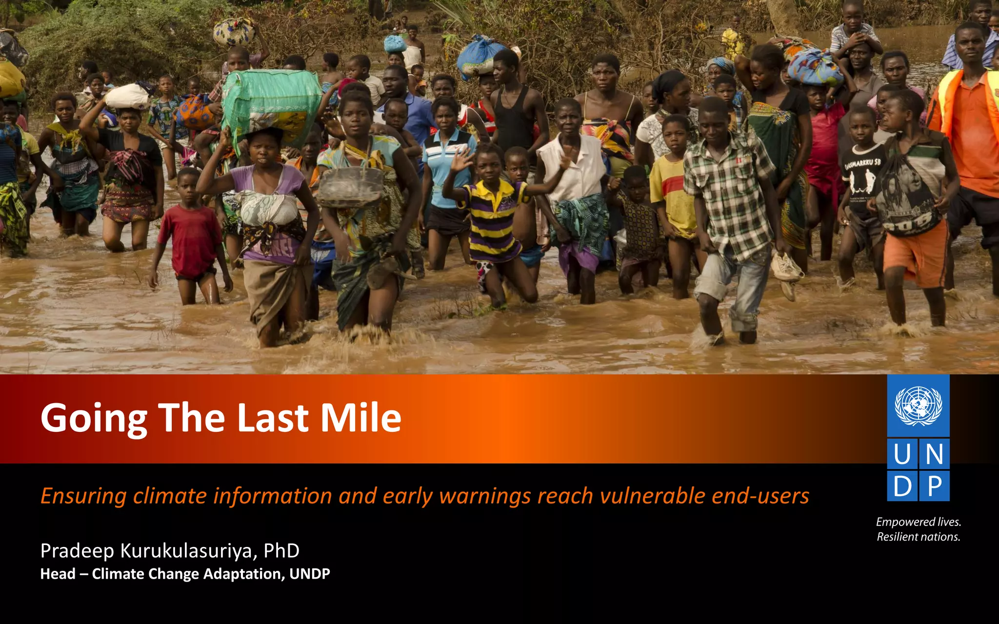 1) The document discusses challenges in ensuring that climate information and early warnings about extreme weather events reach vulnerable communities in the developing world.