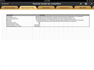 The document outlines the components of a business plan, including an executive summary, company overview, product/service plan, market and industry analysis, and financial plan. It provides guidance on what information to include in each section, such as the purpose and vision in the company overview, key product attributes and benefits to customers in the product/service plan, market size and trends in the market analysis, and competitors and barriers to entry in the industry analysis. The overall goal of the business plan is to prove that a market opportunity exists and convince readers that the business has a viable concept, product, management team, and financial projections to succeed.