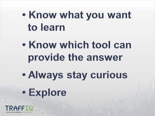 Digital trends and insights from various data sources can be leveraged to optimize online marketing campaigns. Case studies are presented on how utilizing data from platforms like Google Analytics, bid management tools, and offline demographic sources can provide insights to refine media plans and campaigns. This leads to improved performance metrics like lower bounce rates, better ROI, and increased conversion rates by ensuring ads are properly targeted and landing pages are optimized for user intent.