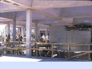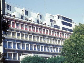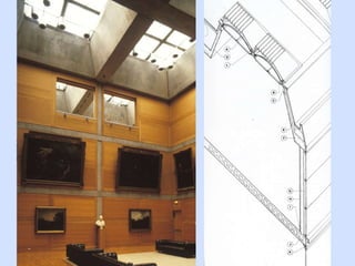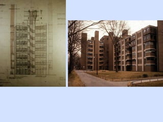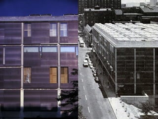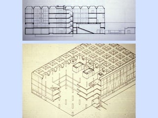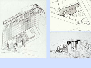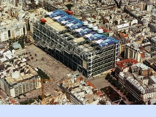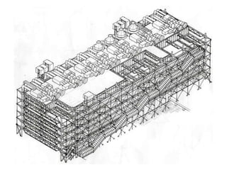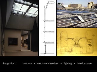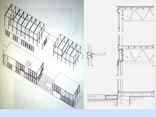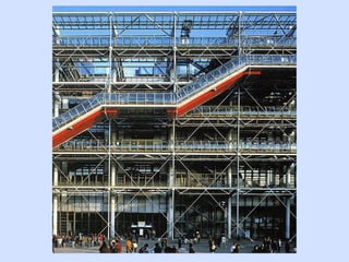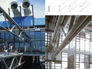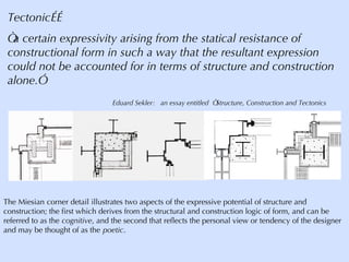 The document discusses the concept of tectonics in architecture from historical and theoretical perspectives. It provides examples of high-tech architecture from the 20th century that embraced structural expression and minimalist aesthetics. The document also examines tectonics from the viewpoint of technics, which considers a building's technical systems and their relationship to physical form and appearance.