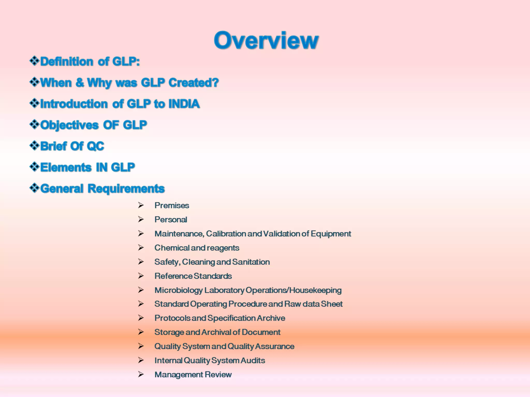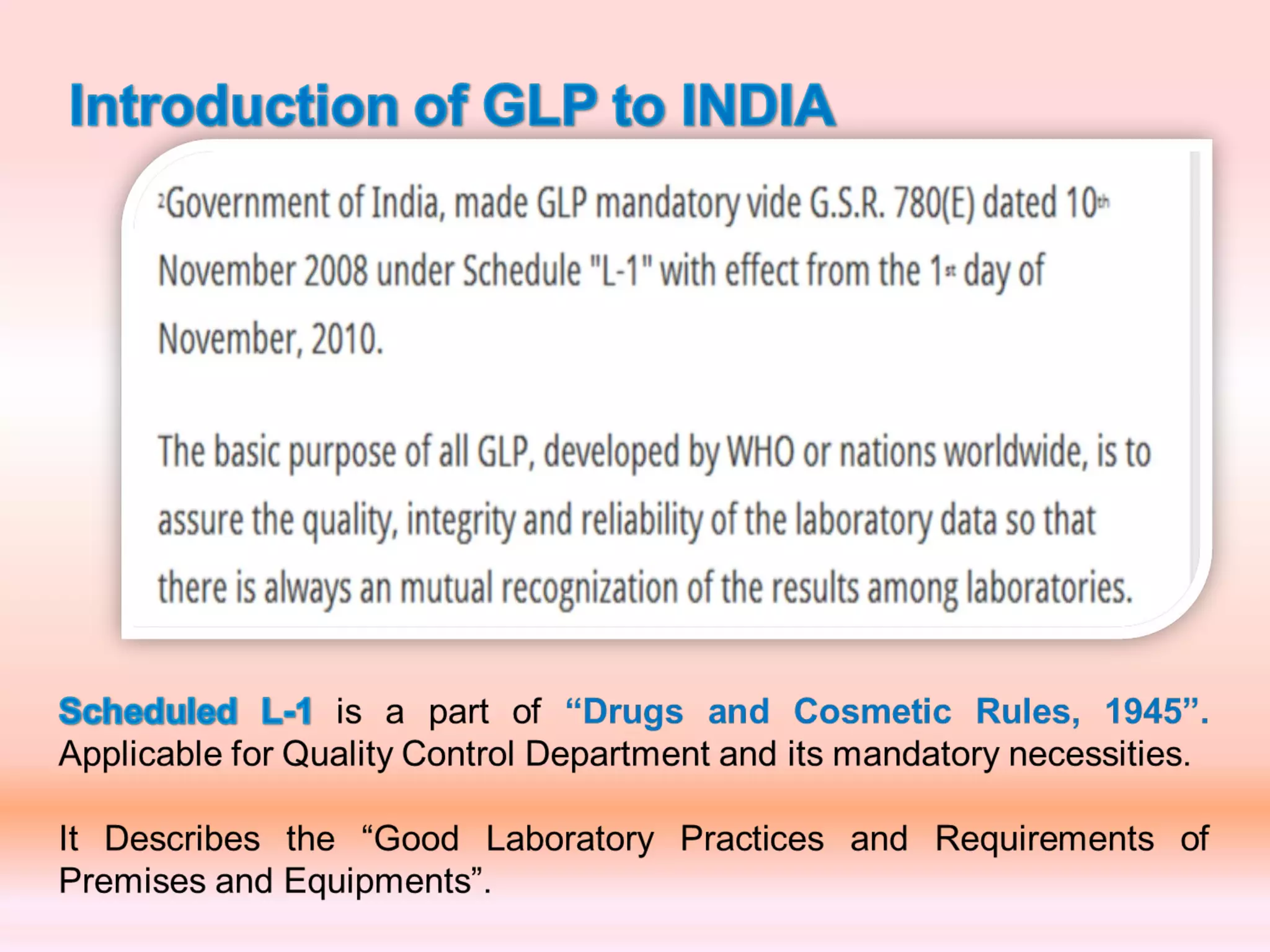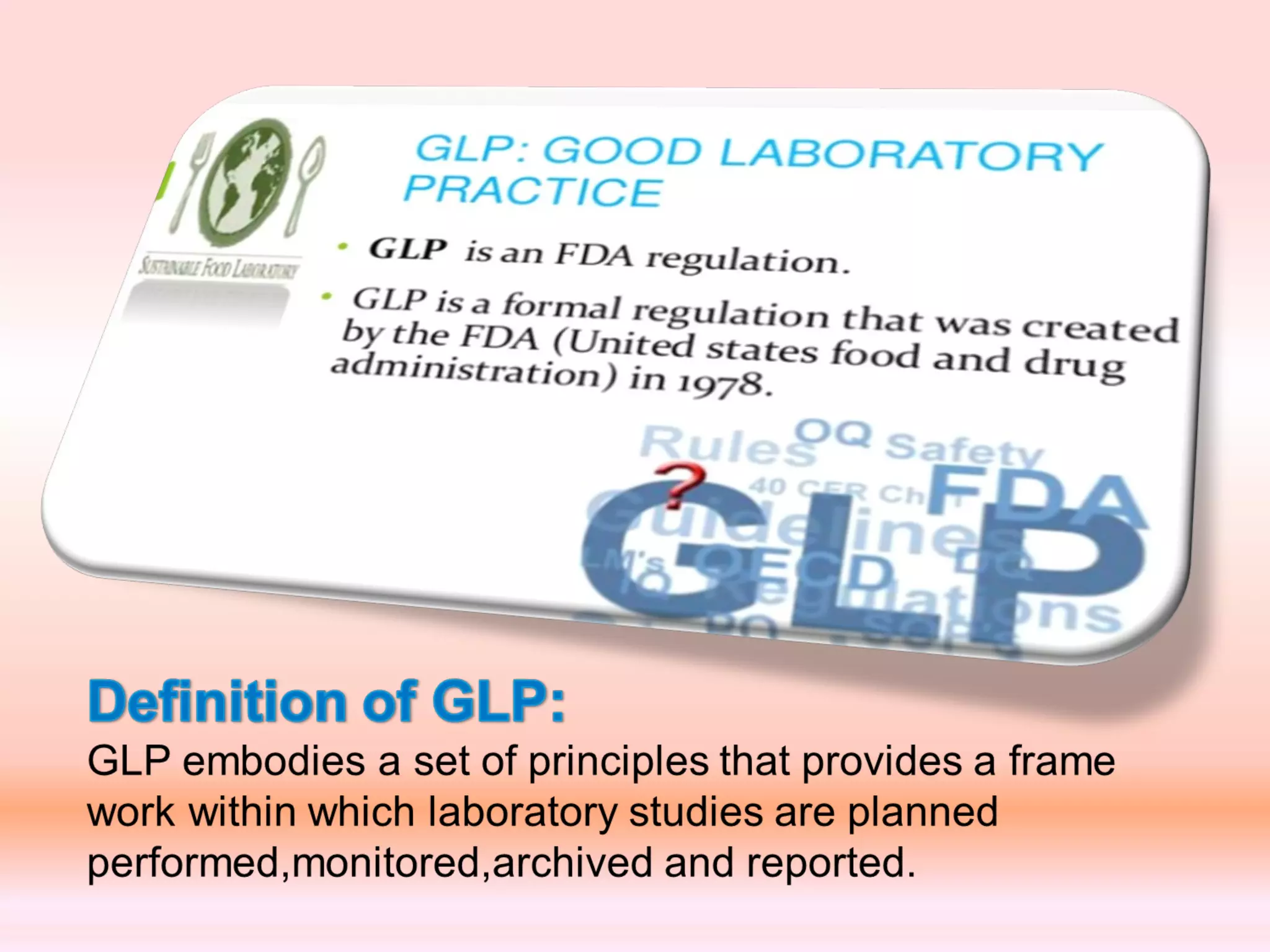 The document outlines Good Laboratory Practices (GLP) which were introduced in response to cases of fraudulent activities and poor lab practices discovered by the FDA in the 1970s. GLP helps ensure data submitted is a true reflection of study results and can be relied upon for risk assessments. It establishes standards for laboratory facilities, equipment, personnel qualifications, organization, standard operating procedures, test and control articles, protocol for conducting studies, and maintenance of raw data. Adhering to GLP helps assure regulatory authorities that submitted safety data is of high quality and integrity.
