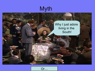 The document discusses the agricultural economy and social structure of the American South prior to the Civil War. It summarizes that the South's economy remained focused on agriculture, particularly cotton farming, due to its profitability. This was done using slave labor, with the majority of slaves working as field hands cultivating and harvesting crops from dawn to dusk. The social structure consisted of plantation owners and a small elite class that owned most of the wealth and land, yeoman farmers that owned medium-sized plots, tenant farmers that rented land, and slaves that performed all agricultural labor and worked in plantation owner's houses.