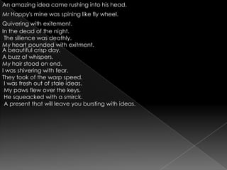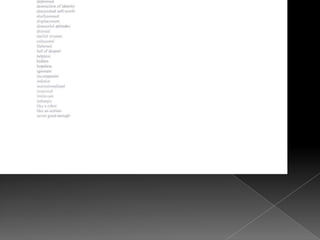 The document contains a collection of phrases and idioms in English. It also includes some short descriptive passages. Here are the key details in 3 sentences: