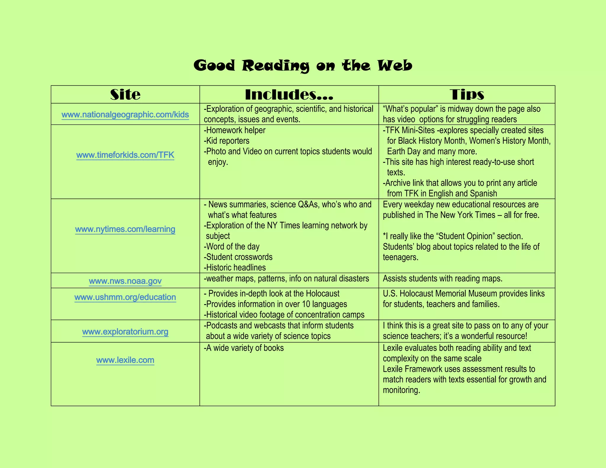 3) The New York Times Learning Network which has news summaries, science explanations, biographies and features by subject for students.