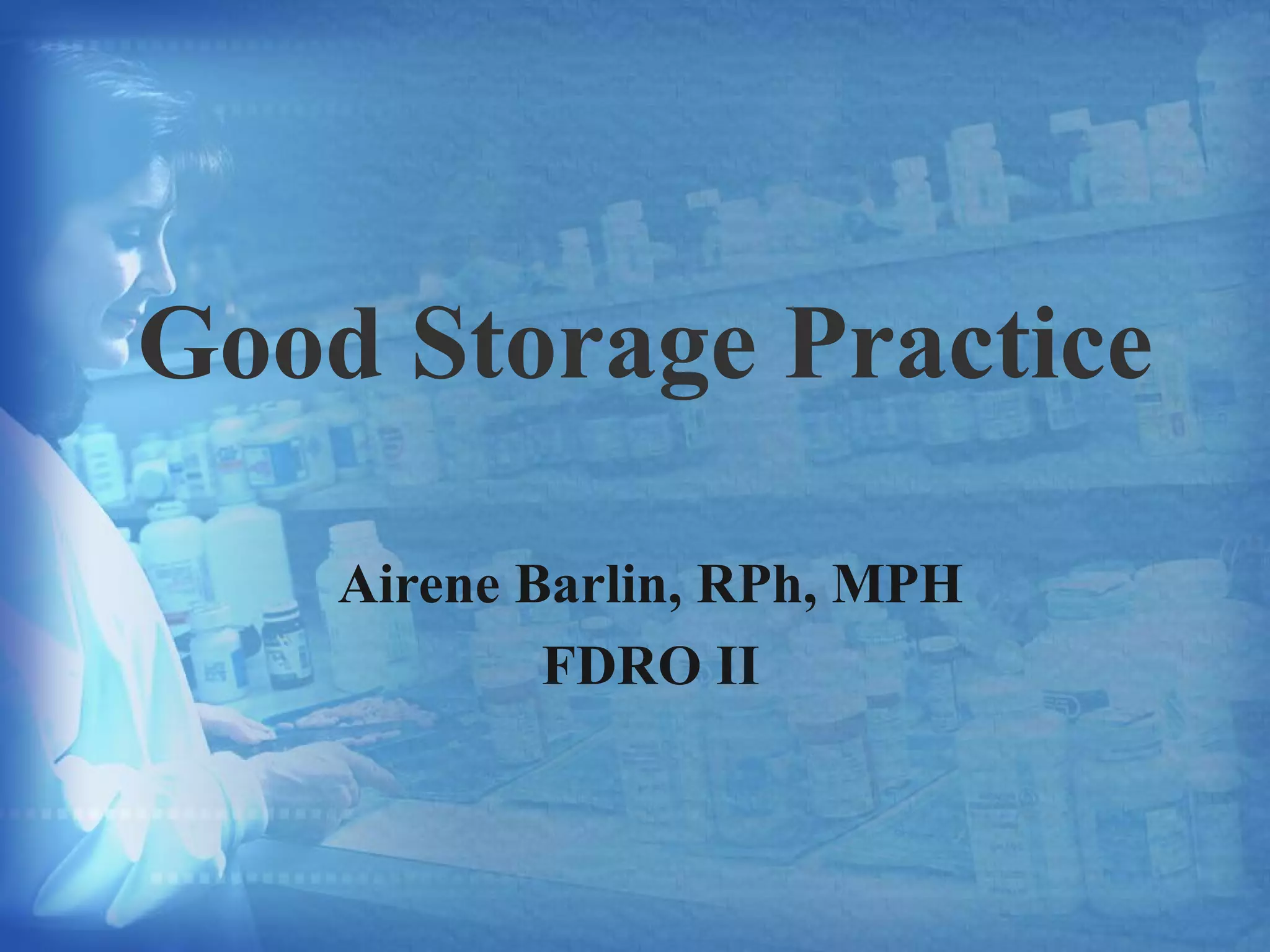This document discusses good practices for storing pharmaceutical products in pharmacies. It emphasizes that medicines must be stored properly under the correct conditions to ensure their potency does not expire early. Every pharmacy needs systems for secure, clean storage with accurate record keeping and stock rotation. Key requirements include preventing access from moisture, light, heat, pests and proper refrigeration. Standard operating procedures should specify activities, timing, locations and responsibilities for consistent operations.