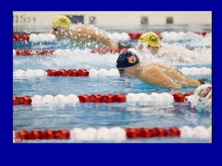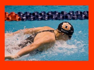 The document discusses materials used for competitive swimming suits, including elastane/spandex and nylon. It describes the properties of these materials that make them suitable for swimsuits, such as stretchiness from elastane and strength from nylon. It also discusses how the materials are produced and how swimsuits are constructed for maximum performance.