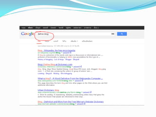บังคับว่า define แล้วตามด้วยคาศัพท์ที่ต้องการ เช่น define blog เป็นต้น blog เป็น