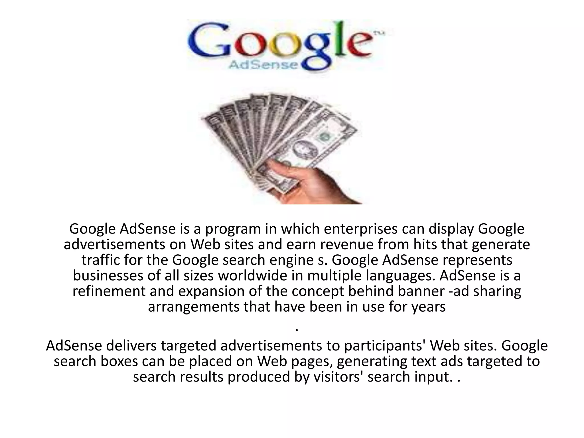 Google AdSense is a program that allows websites to display Google advertisements and earn revenue when visitors click the ads. Businesses of all sizes around the world can participate by placing targeted ads on their websites generated from visitors' searches. Google also introduced the free Ad Planner tool to help advertisers and users understand visitor behavior and answer questions to help with online marketing.