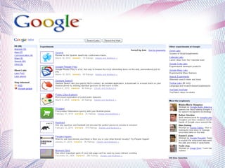 The document provides information on various Google products and services for non-profits, including Google Apps for Non-Profits which offers a suite of applications for communication and collaboration, Google Docs for online document creation and sharing, Google Calendar for event organization and sharing, and Google Checkout for collecting online donations. It also summarizes other tools like Google Reader for RSS feeds, YouTube's Nonprofit Program, Google Health for organizing health information, and Google Profile for presenting yourself on Google.