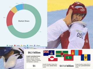 Larry Page and Sergey Brin founded Google in 1998, naming it after the 'googol' and initially calling its software 'Backrub'. What started as a college project revolutionized search. Google offers many free services like Gmail and YouTube to compete with other companies. It makes most of its revenue through ads on its search engine and other sites. While expanding into new areas like smartphones and cloud services has grown Google, it risks straying from its core principles of being helpful, harmless, and honest.