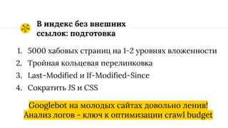 Документ анализирует стратегии успешного интернет-маркетинга, приводя примеры эффективных сайтов и их подходов к контенту и SEO. Основное внимание уделяется уникальному контенту, работе с пользовательским контентом (UGC) и поиску ниш с низкой конкуренцией. Также рассматриваются последствия обновления алгоритмов Google (Google Fred) и влияние качества страниц на трафик.