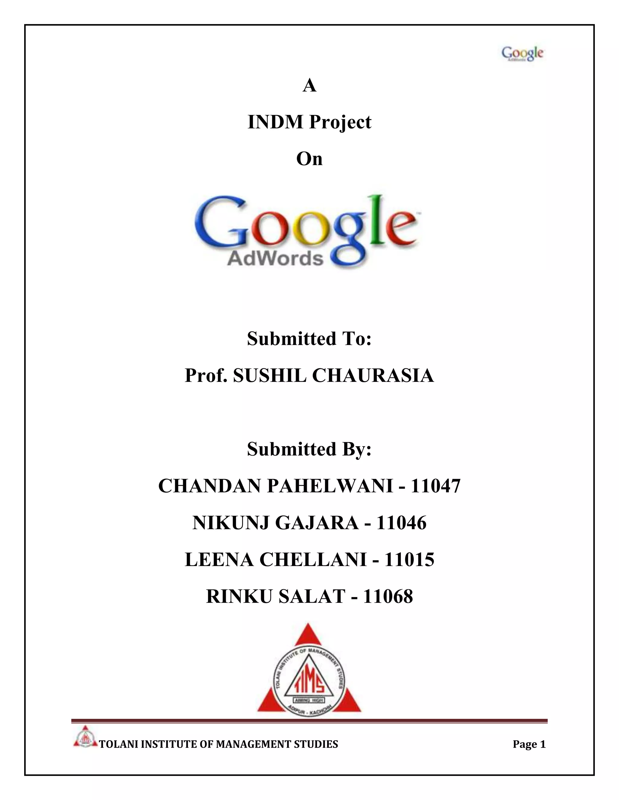 2) Details several benefits of Google AdWords including targeted advertising, improved ROI, and enhanced user experience.