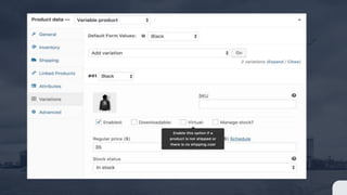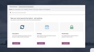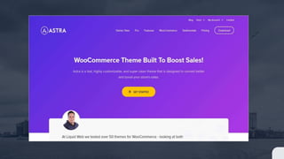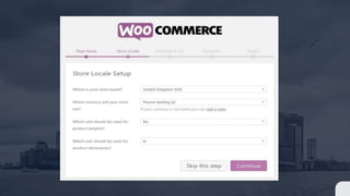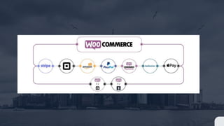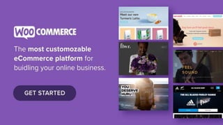 WooCommerce is a free WordPress plugin that allows users to easily build an online store. It provides the basic functionality for an online store out of the box, including the ability to sell physical, digital, and service-based products. To build a WooCommerce store, users need to obtain a domain name and web hosting, install WordPress, add the WooCommerce plugin, create essential store pages like Shop, Cart and Checkout, set up payments and locales, add products, customize the design, and extend features using additional plugins. WooCommerce stores can be customized in many ways to create an effective online storefront.