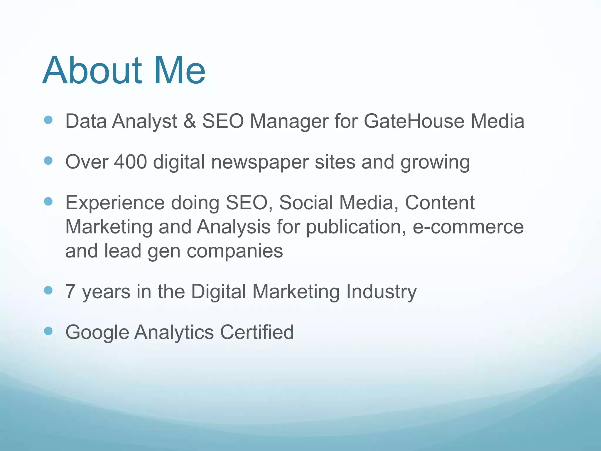 Sherri Horton gives a presentation on using Google Analytics to isolate and analyze data. She covers the basics of Google Analytics including key metrics like pageviews, sessions, and users. She then demonstrates how to create custom dashboards and reports to view data in different ways. Horton also explains how to use segments to compare data subsets and apply those segments to dashboards and reports. Finally, she provides a brief preview of using Google Data Studio for additional data visualization and analysis.