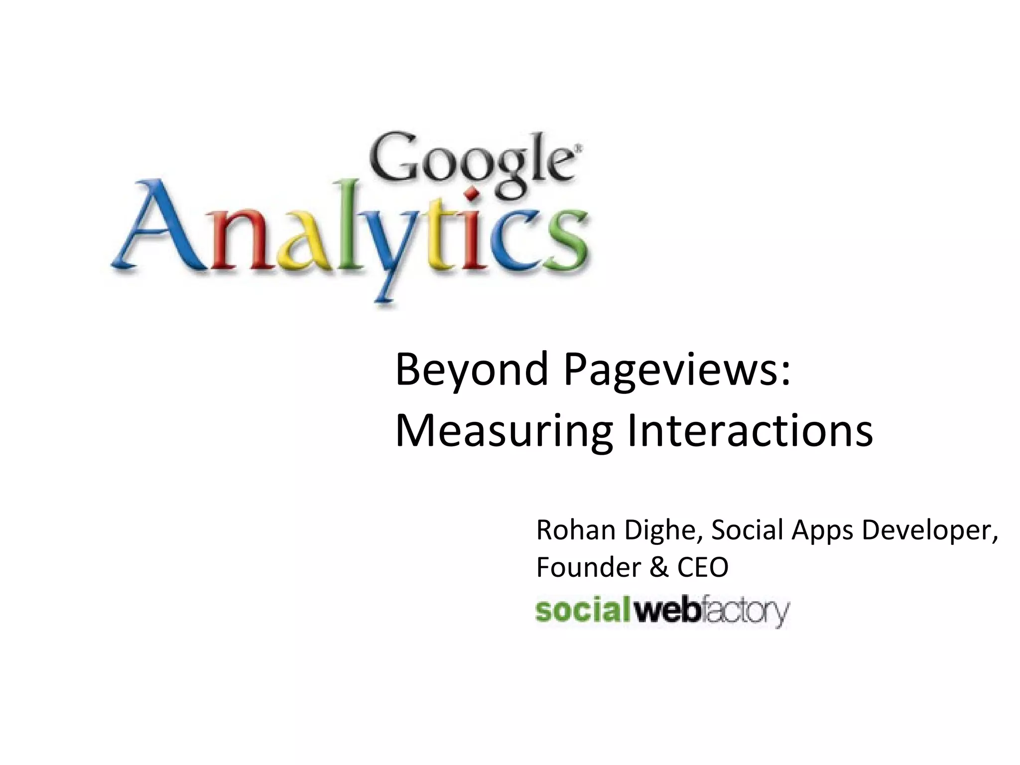 The document discusses various ways to track user interactions on websites beyond traditional pageviews using Google Analytics and other common technologies. It provides examples of specific interactions that can be tracked, like clicks, mouse movements, and steps in a checkout process. It also addresses questions about implementing analytics code, testing, overhead, and best practices.