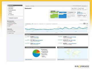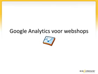 Google analytics voor webshops 1. 2. 3. AgendaWat is web analytics?Waarom Google Analytics?BasisfunctionaliteitWat wil je weten? 4. Wat is web analytics?“Web analytics is het objectief vastleggen, meten, rapporteren en analyseren van kwantitatieve internet data met als doel het verbeteren van websites en van de online communicatie.” – Web Analytics Association 5. 6. 7. 8. 9. 10. 11. 13. RapportenWelke veranderingen zijn er in het bezoekersgedrag?Welke bezoekers komen er in mijn webshop?Hoe komen bezoekers bij mijn webshop?Welke pagina’s bekijken mijn bezoekers?Welke doelen bereiken mijn bezoekers?Wat bestellen mijn bezoekers?Wat wil ik nog meer weten? 14. 15. 16. 17. 18. DoelenWelke handelingen maken bezoekers waardevolle bezoekers?Aankopen, maar ook:Inschrijven voor nieuwsbriefKorting aanvragenMail-a-friend versturenAccount aanmaken 19. Wat wil je weten?Wat zoeken je bezoekers?Wat kopen je bezoekers?Waarom kopen je bezoekers niet?Hoe haal je meeruit je bezoekers? 20. Wat zoeken je bezoekers?Hulpmiddelen:Analyse op paginaBelangrijkste inhoudSite searchOvereenkomstige zoekopdracht uit AdWords 21. 22. 23. 24. 25. Site searchIdeeën voor nieuwe productenIdeeën voor andere producttypesMoet je je producten anders noemen?Welke informatie moet uverder nog aanbieden?? 26. Wat kopen je bezoekers?E-commerce module implementeren (technisch) 27. 28. 29. 30. 31. 32. 33. 34. Hoe haal je meer uit je bezoekers?Wat doen je bezoekers?Hoe kan je je bezoekers kenmerken?Welke groepen bezoekers wil je onderscheiden? 35. GebeurtenissenWat doen bezoekers binnen de webshop?Productvideo’s bekijkenBrochures downloadenProduct beoordelenInloggenElke handeling kan gemetenworden! Wat wil je meten? 36. 37. 38. Aangepaste variabelenMogelijkhedenIs de gebruiker ingelogd? (sessie)Heeft de gebruiker in het verleden korting aangevraagd? (gebruiker)Heeft de bezoeker een productin het winkelmandjegedaan? (sessie)In welke categorie valteen product (pagina) 39. 40. 41. 42. 43. 44. 45.