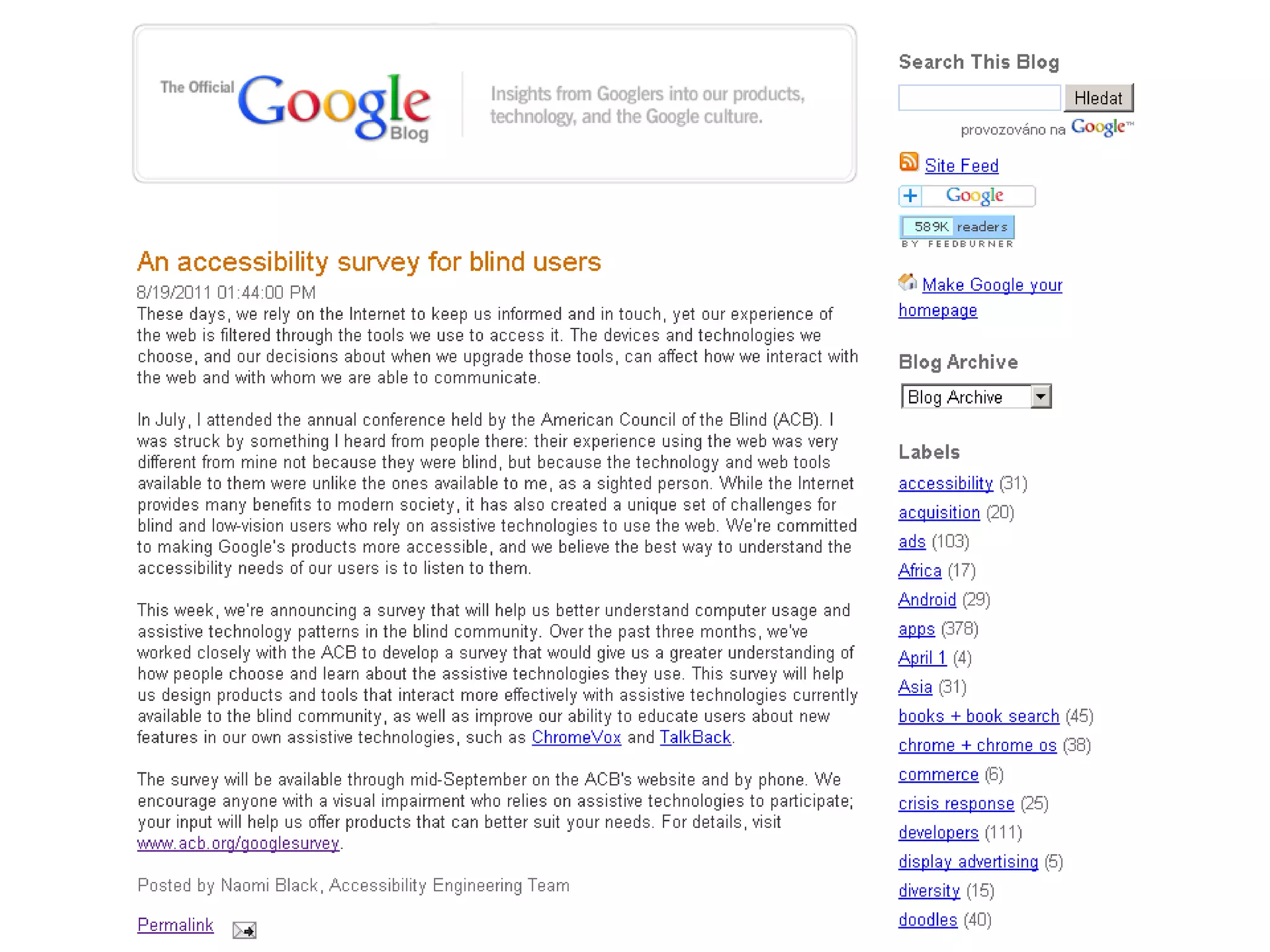 This short document discusses accessibility and encourages the reader to consider accessibility in their own work. It notes that Google has already taken steps to improve accessibility and asks the reader to also focus on accessibility in their projects. The document was posted on social media to raise awareness about inclusive design.